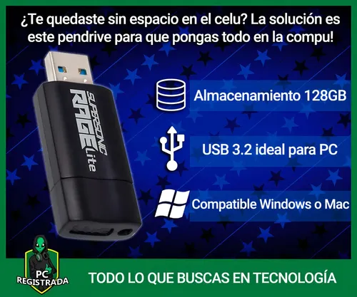 Pendrive 128gb Patriot Usb 3.2 Gen 1 Supersonic Rage Negro Rage